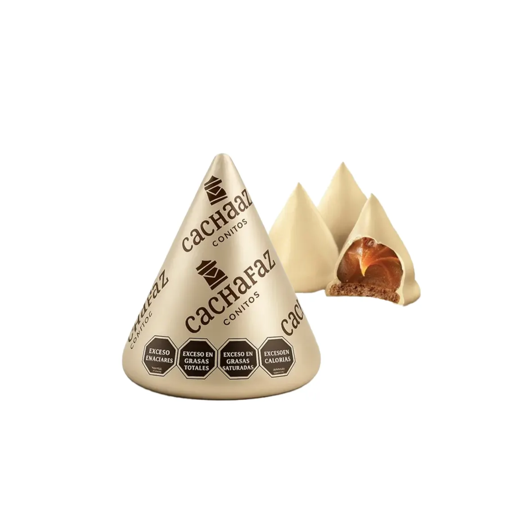 Los Cachafaz Conitos de Chocolate Blanco con Dulce de Leche (Caja de 12) son la versión más indulgente de este clásico argentino en formato gourmet. Cada conito combina una base de galleta crocante, un relleno abundante de dulce de leche artesanal cremoso, y una cobertura de chocolate blanco suave y delicado, logrando un equilibrio perfecto entre texturas y dulzura.