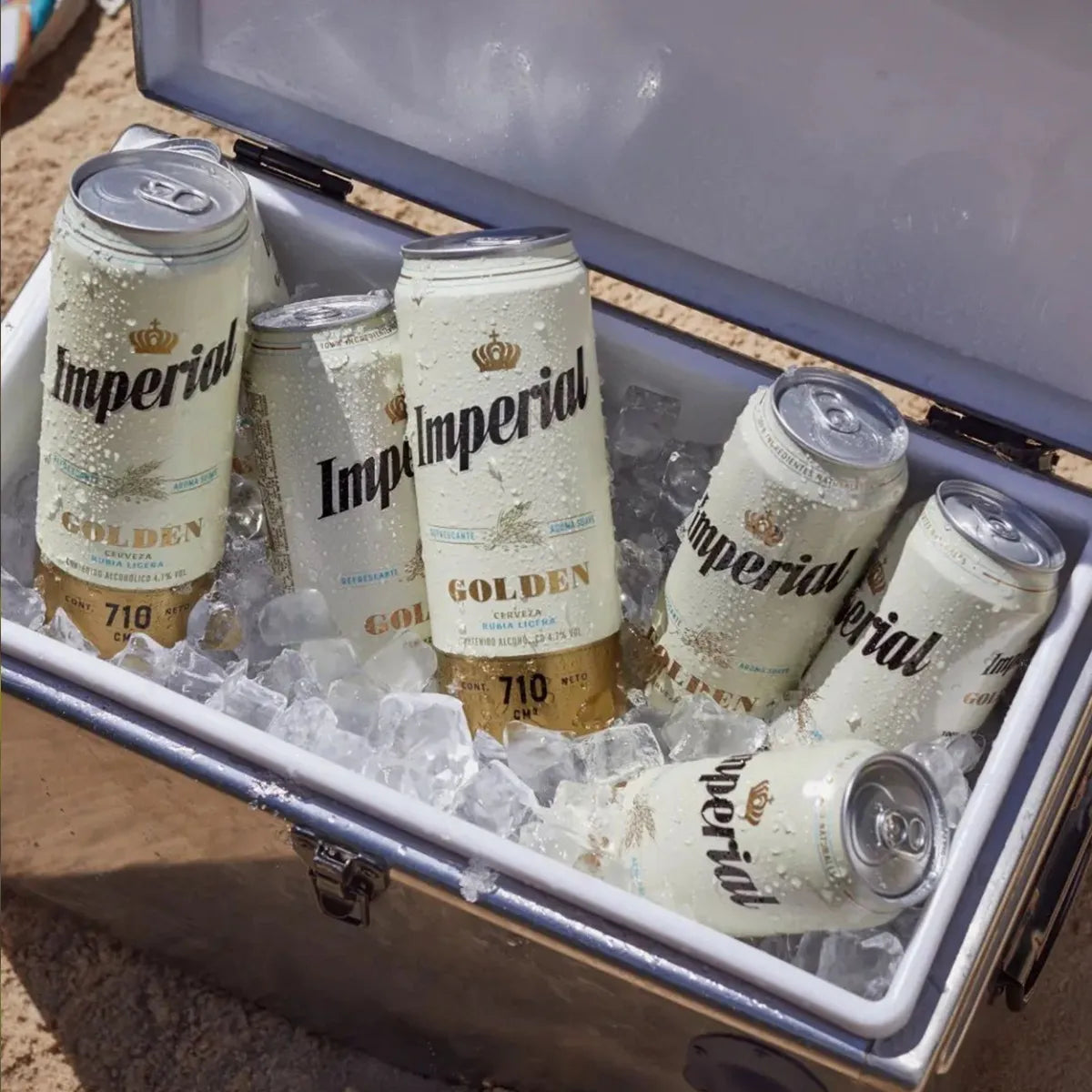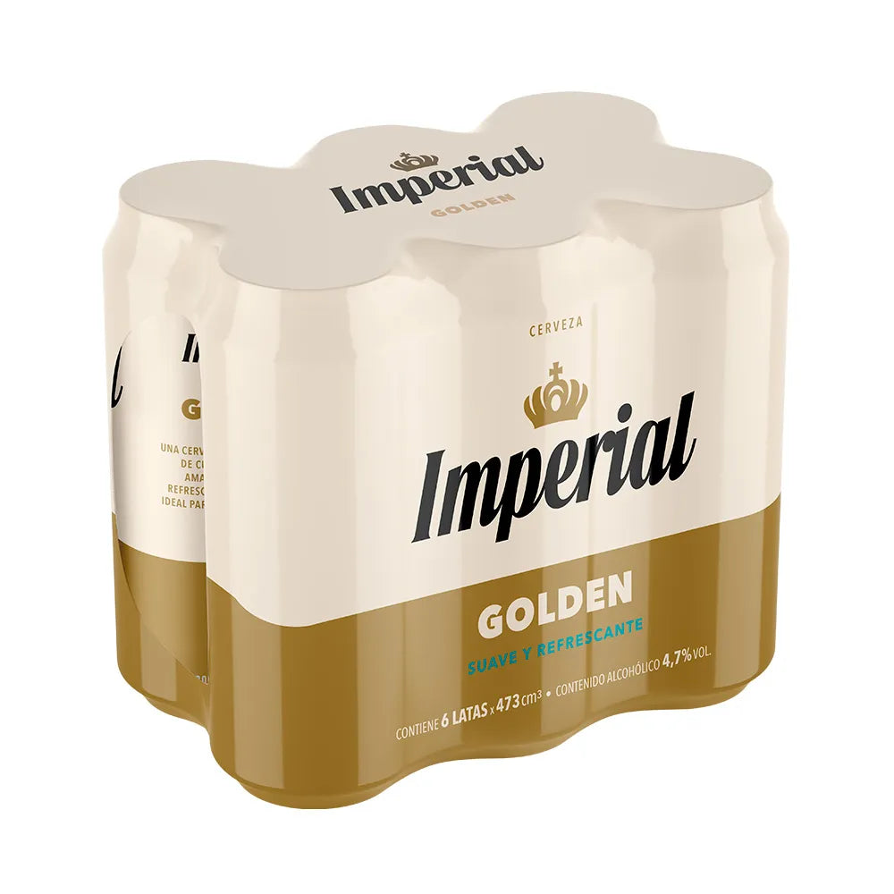 6 latas de Cerveza Imperial Golden, cada una de 473 ml.