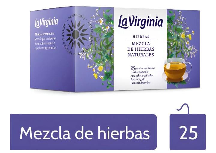 La Virginia Té De Hierbas. Caja 25 saquitos individuales. 35g