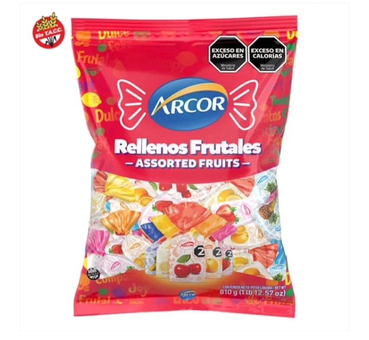 Caramelos Arcor Frutales, rellenos de dulce de fruta, bolsa 810g