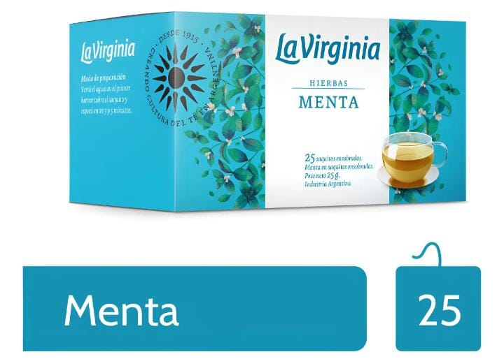 La Virginia Té de Menta. Caja 25 saquitos individuales. 25g